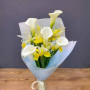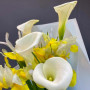 Букет из желтых ирисов и беллых калл в Новозыбкове