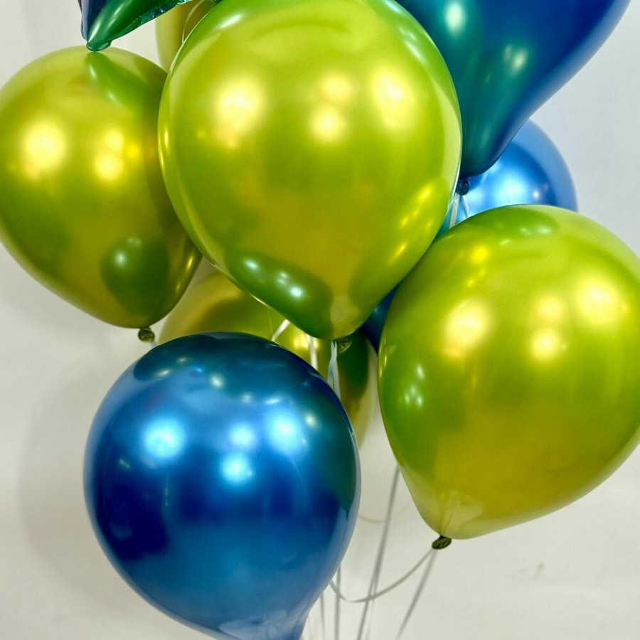 Шар Фольгированный «Звездочка» - 1 Шар латексный синий - 3 Шар латексный зеленый -5